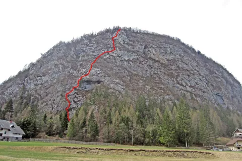 Povzpeli se bomo po težji ferati, po Poti Mojstranških veveric. Vstop v ferato je precej navpičen, direkten, a pot kmalu zavije rahlo v levo in precej hitro dosežemo znamenito lestev, ki se precej premika. Za marsikoga verjetno dokaj adrenalinsko! Na vrhu lestve nas jeklenica vodi v desno, čez razčlenjeno skalo. Stopov je veliko in ni problema. Lepo speljana pot nas hitro vodi proti vrhu in že dosežemo tehnično najtežji del ferate – prečka v desno. Na tem mestu so uporabljene dodatne skobe. Če jih ne bi bilo, bi bila ferata prijetno začinjena in bi jo lahko označili z oceno D. Nad prečnico se pot počene direktno navzgor, nato pa se usmeri rahlo v desno in že smo na vrhu, ki ga označuje Aljaževemu stolpu podoben stolp. Ponekod je izpostavljenost izredna. Kratko in sladko, pravzaprav! Dolžina ferate je približno 250 metrov. Na vrhu je vpisna knjiga, kjer je opozorilna prošnja, da naj se ne sestopa po lažji ferati. Z vrha lahko sestopimo po južni ali po severni poti. Če se odločimo za južno pot, sledimo stezi v smeri smerokaza Mojstrana. Na začetku se pot strmo spusti, nato pa prečno zavije v desno in nas pripelje na markirano pot, ki pelje proti Vrtaški planini, vrhu in Slemenu.