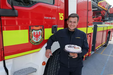 Kranjski profesionalni gasilec Žan Urbanc iz Zaloga pri Golniku je septembra praznoval petindvajseti rojstni dan.