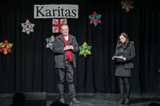 Župnik Franci Alič in voditeljica dobrodelnega večera Mateja Feltrin Novljan / Foto: Tina Dokl / Foto: