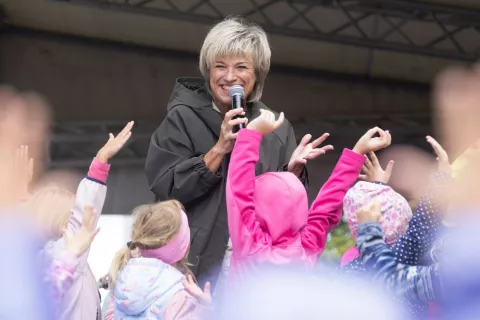 Grajski konec tedna se je nadaljeval v nedeljo, ko je otroke zabavala Romana Krajnčan. / Foto: Peter Košenina