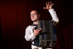 Od džezovskega kitarskega sola, zborovskega korala, tanga in filmske glasbe do del sodobnih skladateljev in lastnih avtorskih skladb. Vse to slišimo, ko na diatonično harmoniko igra harmonikar, pedagog, skladatelj in aranžer Primož Gnidovec. V petek pred polno dvorano Kulturnega doma Janeza Filipiča v njegovem domačem Naklem ...