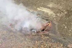 Kmalu sem ugotovil, da je ta pot velika turistična atrakcija. Turistov je bilo toliko kot dima. Neskončno. Na vrhu se mi je ime poti Hot river – Vroča reka – odvilo pred očmi. Reka, ki prihaja iz tal, ima temperaturo 39 stopinj Celzija. Ozračje je imelo deset stopinj. Veliko nas je bilo, ki smo si na vrhu privoščili nekaj minut kopanja.