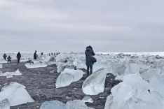Vatnajokull, Langjökull, Hofsjökull, Myrdalsjökull … To so imena največjih islandskih ledenikov, ki pokrivajo 11 odstotkov dežele oziroma 11.800 kvadratnih kilometrov. Zaledenela gmota je na nekaterih delih debela do kilometra! Pod njimi se skrivajo vulkani, ki občasno bruhajo in tanjšajo ledeni oklep. Led se tali in v osrčju ledenikov nastajajo jezera. Če bi ta vodna masa prodrla na plano, bi povzročila velike poplave in izbrisala z obličja zemlje številne vasi. Pravijo, da za sedaj te nevarnosti še ni. Hoja po ledenikih in ledeniških jamah je turistična atrakcija dežele, ki jo znajo Islandci zelo dobro tržiti. Če sežeš globlje v žep, te do ledenikov peljejo vodniki s posebnimi vozili. Ledene gmote pa niso vselej prijazne. Led poka in se premika in to je bilo lani usodno za dva od 25 turistov, ki so bili v eni od številnih ledenih jam …