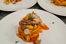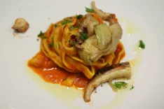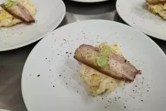 Janez Ferlan, glavna kuhalnica v gostilni Pr' Pepet, nam je pojasnil, da sta za gastronomski večer z Domnom Jaunikom izbirala vino glede na hrano, in med večerjo smo opazili, da so bile gostom »poročne« kombinacije jedi in vina všeč. V kuhinji je Ferlanu pri pripravi jedi pomagal še Jan Bašelj iz Gorenje vasi, ki je v preteklosti že pokazal svoj talent za okuse. Tudi Ferlanova umetniška žilica, po kateri je prav tako zelo dobro znan, se vse bolj izraža tudi v okusih in videzu pripravljenih jedi. Domačnost in prefinjenost gresta pri njem na krožniku z roko v roki – v ravno pravšnji meri.
