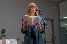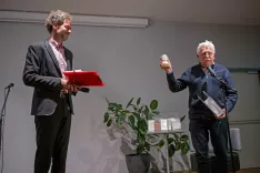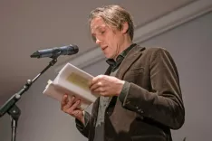 Robert Simonišek med branjem poezije iz nagrajene zbirke / Foto: Primož Pičulin