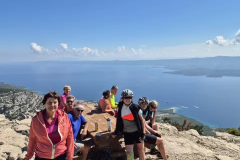 V tem prispevku se bomo spomnili našega zadnjega izleta z barko in kolesi po Srednjem Jadranu. Načrtovali smo kolesarjenje po otokih Šolta, Brač, Hvar, Korčula in Vis. A podobno kot spomladi nam jo je zagodel južni veter, ki po navadi prinese velike valove z morja. Zato smo misel na obisk otokov Korčula in Vis kmalu opustili. Več ur dolga vožnja po valovih lahko postane prava mora. Tako smo se iz pristanišča Primošten prvi dan z Mikijem zapeljali do Šolte. Ker se nam ni mudilo, smo se že prvi dan ustavili v mirnem zalivu in kar z barke skakali v morje. Temperatura vode je bila 21 stopinj Celzija, kar je za konec septembra ugodna temperatura. Prenočili samo v kraju Stomorska na otoku Šolta in naslednje jutro odpluli do pristanišča Milna na otoku Brač. Od tu smo se dvignili do kraja Nerezišća, ki je nekakšno križišče na sredini otoka. Tu se namreč lahko spustiš do letovišča Supetar ali pa pot nadaljuješ proti mestoma Pučišća in Sumartin na drugem koncu otoka. Mi smo se po dobri kavi odločili, da se povzpnemo na najvišji vrh vseh jadranskih otokov, 780 metrov visoko Vidovo goro. Z vrha visoke gore, ki sicer leži nad znanim letoviščem Zlati rt (Zlatni rat) na Bolu, se obiskovalcem odpira izredno lep razgled na otok Hvar. Na vrhu gore bi kar uživali v lepih razgledih, a smo se morali vrniti. Proti mestu Bol, kjer nas je čakala barka, je sicer večinoma spust, a nekaterim našim kolesarjem je že zmanjkovalo energije v baterijah. Zato smo bili kar na trnih. Za kolesarja z električnim kolesom je namreč največji stres, če mu zmanjka energije oziroma je na ekrančku, ki prikazuje energijo v bateriji, samo še ena črtica. V pristanišču Bol smo tudi prenočili in ponoči spoznali, da lahko tudi v zavarovanem pristanišču piha močan veter in močno premika barko. Zato je kapetan barko sredi noči prestavil v varnejše zavetje. Kapitan se je odločil, da bomo izpluli že zgodaj zjutraj in nas je še med spanjem pripeljal na otok Hvar. Izkrcali smo se v mestu Jelsa in od tam kolesarili ob obali do lepega mesta Vrboska. Od tam smo nadaljevali do Starega Grada, ki je najstarejše mesto na Hrvaškem. Že leta 384 pred našim štetjem so ga ustanovili antični Grki in ga poimenovali Faros oz. Pharos – in zgodovinsko središče otoka Hvar je še danes. Nekaj dni pred našim prihodom so v mestu priredili povorko starih bark. Ogledali smo si utrjeno počitniško hišo z imenom Tvrdalj, ki jo je v 15. stoletju zgradil Petar Hektorović, hrvaški renesančni pesnik in avtor več knjig o ribolovu. Pesnik je zgradbo dolgo in natančno gradil in zanj je bila prav tako pomembna kot njegova literarna dela. V mestu nas je ujela edina ploha na našem potovanju in na srečo smo bili ravno takrat na postanku in pili kavo. Okrepljeni smo po stari cesti nadaljevali pot do mesta Hvar. (Se nadaljuje)