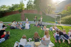 Na prvi šolski dan so otroci v Vovkovem vrtu v Kranju prek pravljične joge lahko tudi sami 'vstopili' v zgodbo, njihova nova prijateljica, Kačalinka, pa je na koncu z njimi delila svoje slastne palačinke. Zbralo se je več kot petdeset otrok s starši in spremljevalci, ki jih je skozi jogijske položaje v pravljici, ki jo je prebrala Anja Kralj Okorn, vodila vzgojiteljica in učiteljica pravljične joge Maja Podpečan.