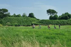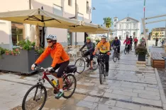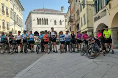 V središču Vidma smo se še skupaj fotografirali in nadaljevali pot do Palmanove. Zadnji del trase se je vlekel, saj so se naši kolesarski števci za ta dan bližali stotici. Kar težko smo čakali mesto Palmanova, a ker je locirano na ravnini in so lokalne oblasti zaradi obrambnih razlogov gradile nizke stavbe, smo mesto opazili šele tik pred obzidjem.