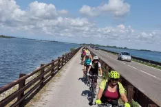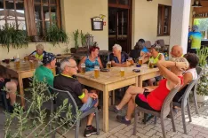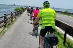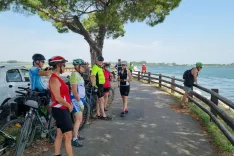 Še kar naprej bi uživali v lepotah Ogleja, a mudilo se nam je naprej po ravni in lepi kolesarski stezi proti Gradežu. Na tej poti je bila najbolj zanimiva vožnja po nasipu do letovišča Gradež. Samo mesto in letovišče je namreč otok, na katerega so zaradi lažje prometne povezave naredili nasip, po katerem se vozijo avtomobili, prostor pa je tudi za kolesarsko stezo. Ogledali smo si stari del mesta Gradež, ki je bil presenetljivo lepo ohranjen. Pot smo nadaljevali ob dolgi peščeni obali in prav na koncu nas je čakal Janez z malico. Z vsemi tremi skupinami smo imeli srečo z vremenom, zato smo se tu lahko tudi kopali.