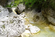 Zapeljemo se do 38. serpentine Vršiške ceste, kjer je opuščena cestarska postojanka. Za hišo je zapornica, mimo katere gremo dobrih 100 metrov, ko nas možic usmeri desno navzdol na stezico. Steza nas pripelje do struge potoka Mlinarica, ki jo prečimo. Kakšen je vodostaj, je malce odvisno od deževja, a v vsakem primeru smo pri prečenju previdni. Struga potoka Mlinarica višje in nižje od mesta prečenja postreže s številnimi čudovitimi tolmuni in slapiči.