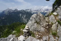 Današnji vzpon nam bo po prehojeni strmini postregel z enkratnim razgledom, ki v krogu 360 stopinj ponudi resnično ogromno: Prisank, Razor, Planja, Stenar, Bovški Gamsovec, Pihavec, Triglav, Kanjavec, Visoko Špičje, Krn, Bavški Grintavec, del Loške stene, Jalovec, Mojstrovke …, če naštejem le najbolj znane. A za to veličastno panoramo se bo treba malce potruditi in ponekod imeti tudi nekaj občutka za orientacijo, saj se bomo podali na vrh, na katerega vodi le neoznačena steza, pa še ta sem in tja rahlo izgine. Razglednik se imenuje Goličica.