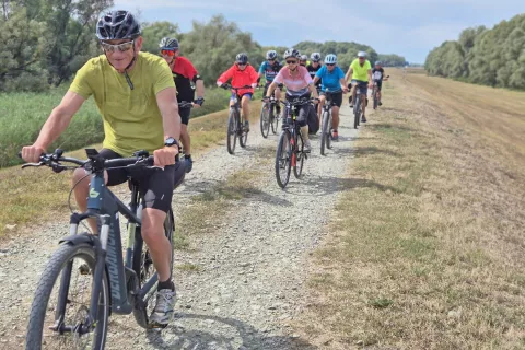 Pogosto smo kolesarili po rečnih nasipih, tale je v naravnem parku Kopački rit ob Donavi.