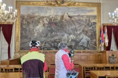 V mestu se še vedno močno čuti vpliv avstro-ogrske dobe. Eden najbolj impresivnih primerov je stavba županije, ki stoji na koncu prej omenjene avenije. Z eno izmed skupin smo si lahko ogledali tudi notranjost stavbe in občudovali znamenito sliko Bitka pri Senti. Slika je široka sedem metrov in visoka štiri metre. Prijazni vratar nam je razložil, da so jo naročili leta 1896 ob tisoči obletnici prihoda Madžarov v Panonsko nižino. Uokvirili so jo v Münchnu in jo nato z ladjo po Donavi prepeljali v bližino Somborja.