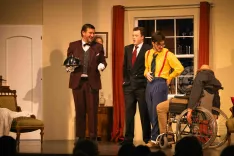 Že uvodna scena na odru nas spomni na klasičen cooneyjevski inventar – dolga stena z več vhodi, naj bodo vrata sobe ali omare, okno, zofa in seveda obvezni stacionarni telefon. Vse omenjeno deseterica akterjev v več kot dve uri dolgi predstavi vseskozi s pridom uporablja. Zgodba nas popelje v hotelsko sobo, kjer se minister aktualne vlade dobi s tajnico vodje opozicije, da bi skupaj preživela noč. Če sprva izpade, da sta ljubimca uredila vse potrebno, da njuna partnerja o tem ne izvesta nič, se stvari začnejo zapletati, ko ju na okvarjenem oknu apartmaja pričaka truplo, za katero se kasneje izkaže … Na koncu predstave izveste vse. Minister Richard Pimpy (igra ga Timotej Kresnik) na pomoč pokliče svojega osebnega tajnika Georgea Tepchcka (Rene Borštnar), s katerim po sistemu »znajdi se« ostalim vpletenim nizata laž za lažjo, da bi se na koncu izognila škandalu – gre namreč za ministra.