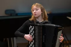 Nastopila je tudi Zala Zarja Mesec, ki obiskuje drugi letnik Akademije za glasbo v Ljubljani, na letošnjem državnem tekmovanju pa se je dokazala kot najboljša harmonikarica v državi. / Foto: Gregor Vidmar