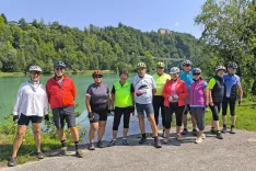 Po ogledu Borovelj smo se vrnili na Dravsko kolesarsko pot in nadaljevali po desnem bregu, nato pa čez most ÖDK Draubrücke bei Rottenstein prečkali reko in zavili na levi breg proti Linsendorferskemu jezeru. Nekateri so izkoristili priložnost za osvežitev v vodi, drugi pa smo si privoščili kavo v bližnjem lokalu.