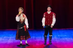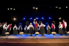 Cerkljanska folklorna skupina je na petkovem Večeru folklore nastopila z dvema spletoma gorenjskih plesov: Cerkljanska tržnica (na sliki) in Na ličkanju ter s spletom prekmurskih plesov Pozvačin. / Foto: Primož Pičulin