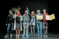 Izjemni igralski tandem Matej Čujovič in Bojan Trampuš v odrski družbi s posebnim priznanjem nagrajene Petre Krančan / Foto: Aljaž Hafner / Foto: