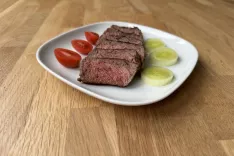 Za pripravo hitro pečenih govejih zrezkov potrebujemo: 4 debelejše goveje zrezke (približno 2 centimetra), olivno olje, grobo mleto sol in grobo mleti poper.