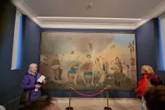 Pomnik miru danes v sedmih etažah skriva dragocene zaklade zgodovine in umetnosti, ki povezujejo mikro- in makrokozmos, univerzalni jezik simbolov, ki se skozi pretresljivo zgodovino 20. stoletja po časovni spirali povezuje s slovenskim človekom, s slovenskim rodom, od njegovih začetkov do sedanjosti, iz katere se zazira v prihodnost. Ogledali smo si dokumentarni film o soški fronti med letoma 1915 in 1917 na Krasu, poslušali razlago slike z naslovom Ples življenja in smrti slikarja Rudija Španzla. Idejo za kompozicijo slike je avtor povzel po fotografiji resničnih godcev, ki so skrbeli za vzdušje med soborci v času najhujših bitk. Takoj smo opazili, da na primer harmonikar drži harmoniko narobe, kar simbolizira čas vojne vihre – torej čas, ko je vse narobe. Slika je olje na platnu, triptih, ki ga likovna kritika imenuje slovenska Guernica. Ob sliki se človek zamisli nad tragiko in smiselnostjo vojne. Skuša nas opozoriti na napake v zgodovini človeštva in naj jih ne ponavljamo.