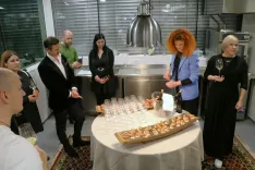 Tokrat nas po uvodnem pozdravu niso posedli za mize, temveč so nas peljali najprej v kuhinjo – dobesedno. V Restavraciji Tabor imajo t. i. chefovo mizo, kar sicer ni nov koncept, a za ta konec Gorenjske bi lahko bil novost. Gre za to, da se gostje prepustijo kuharju in njegovi izbiri, je pa število gostov, ki hkrati sedijo za mizo, omejeno.
