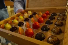In potem se je med mizami pojavil Maks Pogačnik, najprej s posebnim lesenim »pogrinjkom« za svoje pralineje, v veliki leseni škatli, kjer bi sicer pričakovali kubanske cigare, pa so se gostom »smejali« pralineji takšnih in drugačnih oblik in okusov. Mladi čokoladni mojster je povedal nekaj besed o čokoladi, naštel okuse iz škatle, prav za Tabor pa je ustvaril poseben čokoladni bombon – praline, ki se poda k rumu. Bi si pa upala trditi, da ga je večina v tistem trenutku bolj videla kot slišala, saj so lični pralineji v škatli prav kričali po tem, da jih je treba pojesti.