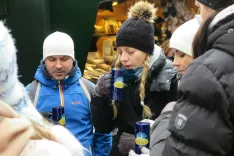 Drugi dan obiska smo se s turističnim vodnikom sprehodili skozi Salzburg, izvedeli še nekaj bolj neobičajnih zgodb o mestu, nato pa odšli na kosilo v restavracijo Stiegl-Keller, kjer seveda brez znamenitega piva Stiegl ne gre. Večina nas je na meniju izbrala tanek paniran telečji zrezek oziroma dunajski zrezek, ki sta mu na krožniku delala družbo krompir v kosih, posut s peteršiljem, ter brusnična marmelada.