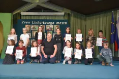 Najmlajši pripovedovalci in deklamatorji v družbi igralca Gabra Trseglava, domačina iz Radovljice / Foto: Marko Grimani, OŠ A. T. Linharta