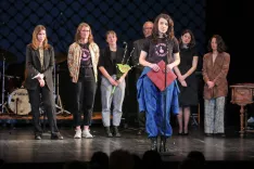 Slovesni zaključek v režiji Bora Ravbarja se je začel pomenljivo, v skladu s časom, v katerem živimo, in dogodki v svetu, ki jih spremljamo in se nanje odziva tudi sodobno gledališče. Povezovalki programa, igralki kranjskega ansambla Vesna Slapar in Vesna Pernarčič, sta v uvodu predstavili pesem Rifata Alarira, palestinskega pisatelja, pesnika, profesorja in aktivista, ki je umrl 6. decembra lani v bombnem napadu na Gazo. Pesem Če moram umreti je napisal zgolj nekaj dni pred smrtjo in je bila do danes prevedena v več kot štirideset jezikov. »Če moram umreti, moraš ti živeti, da poveš mojo zgodbo,« govorijo prvi verzi pesmi.