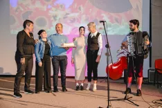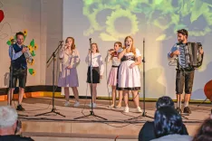 Mama Barbara Tonejc, Tinka Tonejc, pobudnik koncerta Miha Smolej, Neža Tonejc in Valerija Čarman ter harmonikar Aleš Jakopič / Foto: Nik Bertoncelj