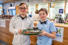 Ob svetovnem dnevu Downovega sindroma, ki smo ga zaznamovali v petek, so se radovljiški paraplavalci v Bistroju Obla preizkusili v vlogi natakarjev. Odlično jim je šlo.