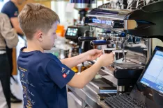 Matija je ob pomoči Petre okusno kavo postregel kot pravi natakar. / Foto: Nik Bertoncelj