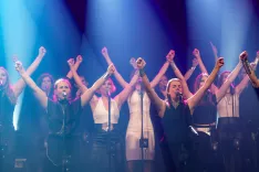 Skupina Perpetuum Jazzile je z vokalno ekstazo obljubila nepozabno doživetje, polno vizualnih in glasbenih užitkov. Obljubo je izpolnila, saj je navdušila več kot tisoč tristo obiskovalcev sobotnega koncerta na Trati.