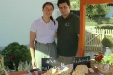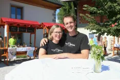Jana Ovsenik, gospodarjeva sestra, nam je zaupala, da konec septembra in v oktobru pripravljajo na kmetiji tudi delavnico priprave štrukljev; na hitro nam je prišepnila še o Četrtkih z razgledom, gledališkem abonmaju KUD-a Predoslje; na stojnici pa si je prostor delila še s kmetijama Štirn in pa Matijovc.