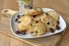 Za pripravo piškotov z brusnicami in pistacijami potrebujemo: 250 g moke, 125 g masla, 2 rumenjaka, 80 g sladkorja v prahu, 100 g soljenih pistacij, 80 g suhih brusnic, pol pecilnega praška, 1 vaniljev sladkor, lupinico ene bio limone, ščep soli.