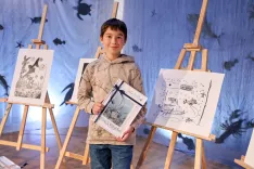 Nagrado za najboljše likovno delo v drugi triadi je prejel Jaša Kos iz Osnovne šole Jakoba Aljaža Kranj. / Foto: Tina Dokl