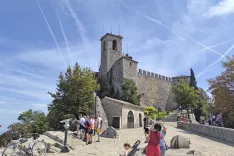 Po kolesarski poti tik ob reki Marecchia smo nadaljevali do Ponte Verucchia, nato pa po cesti do Dogana di Verucchio I, kjer smo zapustili reko in zagrizli v osemkilometrski klanec proti San Marinu, peti najmanjši državi na svetu, ki meri le 61 km2 in ima približno 34.000 prebivalcev. Vzpon skozi Gualdicciolo in Acquavivo nas je pripeljal v Borgo Maggiore, nad katerim se mogočno dviga staro mestno jedro kot kamnita utrdba, postavljena med oblake.