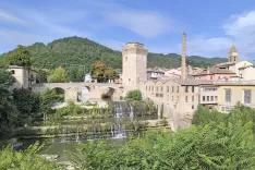 Iz mesta smo se po valoviti pokrajini spustili proti Fermignanu, kjer nas je pričakal mogočen rimski most čez reko Metauro, pod katerim so se v soncu bleščali slikoviti mestni slapovi. Na eni strani stoji obrambni stolp Torre delle Milizie, sprva zgrajen za obrambo, pozneje pa namenjen pobiranju mostnine, ob njem pa stavba nekdanje papirnice.