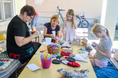 Otroci med ustvarjanjem na vrtu hiše Krice Krace, kjer vsak teden nastajajo nove ideje in domiselni izdelki / Foto: Tina Dokl