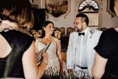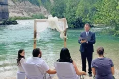 Janina in Milodrag sta se spoznala pred petimi leti na »štantu« na Okusih Bleda, na Promenadi, izvemo. Janina nadaljuje, da sta najprej načrtovala poroko letos sredi maja na Bledu, vendar jima je načrte prekrižala koronasituacija. Morala sta spremeniti datum in zamenjati lokacijo, sta pa tudi že na začetku razmišljala o manjši poroki, v ožjem družinskem krogu. Usodni da sta tako dahnila 25. julija v Izoli. Nedavno sta za prijatelje pripravila še piknik ob Savi. Tam pa je Janina poskrbela za presenečenje: organizirala je reprizo poročnega obreda. Zasmeji se: »Res je bilo videti, kot da se bova zares poročila. Celo Toni Mežan je prišel, da potrdi zvezo – neuradno seveda. Toni bi naju moral poročiti že maja, ko naj bi bila poroka na Bledu,« razloži. Milodrag še enkrat pove, da ga je res presenetila.