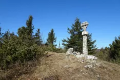 Naprej sledimo markirani poti proti Sinjemu vrhu. Lahko se povzpnemo tudi na Navrše (857 m n. m.), čeprav gre markirana pot pod njim. Markirani poti sledimo do nekakšnega sedla, kjer je električni daljnovod Ajdovščina–Trnovska planota. Na to sedlo pride t. i. Šturska pot iz Ajdovščine. Ker na Sinji vrh ne gremo, sledimo desni poti, Poti po robu Gore. Izjemno razgledna in razgibana pot nas vodi mimo Štorskega kala ter mimo Črnih sten. Opazimo tudi markacije za krožno pot po Angelski gori. Malce naprej od Črnih sten pridemo do kamnitega stebra s križem na Podrti gori, čeprav je žig nižje in bolj proti vzhodu, ob poti, po kateri bomo sestopili. Na zemljevidih je vrh označen tudi kot Pravi vrh. Sledimo še naprej označeni poti, dosežemo še en odcep, ki se vrača v dolino, kjer bomo sestopili. Pred nami je le še nekaj minut vzpona na vrh Kraguljca, ki je vzpetina s križem med Podrto goro in Sončnico. Tisto nedeljo je bilo v zraku ogromno jadralnih padalcev. Vrnemo se na razpotje in začnemo sestopati nazaj proti izviru Hublja. Pot, po kateri sestopamo, ni označena, a je izjemno lepo speljana. Gremo mimo še ene kapelice in žiga za Podrto goro. Spust je na začetku precej strm, v okljukih, nato pa prečimo. Na razpotjih svetujem, da se držimo desne poti. Ko pridemo na razcep za Stare babe, nadaljujemo po kolovozu naravnost. Na drevesu piše Izvir. Lahko sledimo kolovozni poti ali pa zavijemo levo na neoznačeno pot, ki nas v strmem, mestoma izpostavljenem sestopu pripelje neposredno na parkirišče pri izviru Hublja.