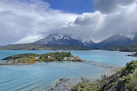 Hosteria Pehoé, pri kateri se začenja kratek vzpon do razgledne točke Mirado Condor