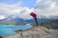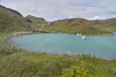 Če sva se dan prej pridružila prvi skupini, sva tokrat z redkimi posamezniki nadaljevala pot proti rdeči hiški, ki sameva sredi jezera Pehoé. Pri Hosterii Pehoé sva namreč začela kratek pohod do razgledne točke Mirador Condor, od koder se odpira čudovit razgled na turkizno jezero ter nekaj majhnih lagun v okolici. Rahlo pršenje se je izmenjevalo s sramežljivimi sončnimi žarki, močni sunki vetra pa so oteževali hojo in se na vrhu neusmiljeno zaganjali v premražene turiste.