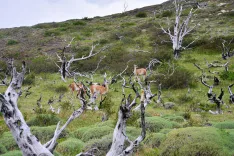 Po hitrem spustu v bolj zavetrne dele sva se odpravila še proti razgledni točki Cuernos. Nadaljevala sva mimo Refugia Pudeto, veličastnega slapa Salto Grande in sivo ožganih dreves, ki jih je v letu 2011 opustošil požar, ki ga je zanetil nepazljiv turist. Razgled na značilne rogove Cuernos nama je zastrla gosta megla, ki se je navlekla nad gorovje, a je tudi muhasto patagonsko vreme imelo svoj čar in z igro svetlobe jezera obarvalo v neverjetne turkizno-modre odtenke. Nad njimi se je v nebo vzpenjala siva Kordiljera del Paine, nekje v daljavi pa je bilo slutiti začetek Francoske doline. »Toliko morava še obiskati in videti!« sem potarnala Nejcu, ki mi je stisnil roko in obljubil, da se nekoč spet vrneva.