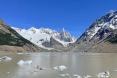 Naslednji dan sva po že dodobra ustaljeni rutini pojedla zajtrk, spakirala malico ter se odpravila na treking proti laguni Torre. Enajst kilometrov dolga in razmeroma ravna pot preči nekaj nizkih sedel, se vije med dišečim grmičevjem in travniki, polnimi cvetočega regrata, ter se zaključi pri ledeniški laguni s pogledom na mogočni Cerro Torre. Pot nato preide v slabo vidno ozko stezico, ki zaobide desni del lagune in se povzpne do razgledne točke Maestri. »Ta je dobila ime po italijanskem alpinistu Cesareju Maestriju, ki je, potem ko mu nihče ni verjel, da je preplezal znamenito steno Cerro Torre, vanjo s kompresorjem navrtal svedrovce, kompresor pa obesil na vrh smeri – in še danes visi tam,« je pojasnil Nejc in skupaj sva se čudila skoraj groteskni vztrajnosti, ko sva iskala navidezno linijo te 350 metrov dolge smeri.