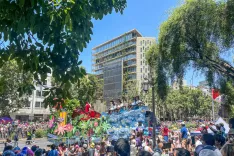 Če sva se v Patagoniji oblačila v tople puhovke, naju je Santiago presenetil z večnim soncem in visokimi, poletnimi temperaturami. Vstop v nov letni čas je mesto praznovalo s povorko ogromnih napihljivih junakov Marvela, Disneyja in Vojne zvezd, ki je z več tisoče obiskovalci povzročila pravi kaos, da sva se po nekaj poskusih le s težavo zdrenjala na metro in se prebila do Lastarrie. Tam sva se zapodila v čudovito knjigarno Ulises, se po ozkih tlakovanih ulicah sprehodila mimo tržnice lokalnih umetnikov in se po postanku na tortici in kavi, povzpela še na razglednik Cerro Santa Lucia.