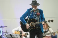 Na koncertu se je šolskemu pevskemu zboru, glasbeni skupini in zboru učiteljev pridružil tudi težko pričakovani gost Vlado Kreslin. / Foto: Alenka Brun