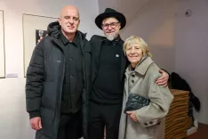 V Galeriji Prešernovih nagrajencev bo vse do konca marca na ogled del njegovih ustvarjalnih dosežkov, minuli torek pa je po razstavi poleg številnih obiskovalcev vodil prav posebne goste, letošnje Prešernove nagrajence. Obiskovalce je najprej zbral v pritličju galerije, kjer predstavlja predvsem časopisne in revijalne ilustracije. Posebno pozornost je posvetil ilustraciji z naslovom Solzice, ki jo je za Večer narisal ob povodnji avgusta predlani in za katero pravi, da jo je naredil s precej sentimenta in z mislijo na takrat od sveta odrezano rodno Koroško. V sosednji sobi se je ustavil ob ilustraciji z naslovom Začarani krog in spregovoril o kakovostnem novinarstvu, ki ga iz tiskanih medijev – še posebej Večera – izriva pohlep kapitala.