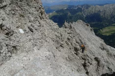 Ko sem na vrhu Grande Cir gledala proti zahodu, se mi je pogled ustavil na visokih sulicah, gorah zanimivih oblik, ki so kar vabile in privabile. Gre za gorski masiv Odle / Geisler. Glavni in najvišji vrh tega gorskega območja je Sass Rigais, 3025 m n. m. Tudi njegov sosednji vrh Fruchetta meri 3025 m, a je dosegljiv le alpinistom. Na Sas Rigais se bomo povzpeli po zavarovanem vzhodnem grebenu, sestopili pa po njegovem južnem pobočju.