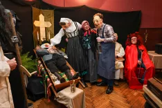 Krsta s truplom pusta, ob njem pa so (z leve): ta stara, vdova Johana in ta star / Foto: Tina Dokl